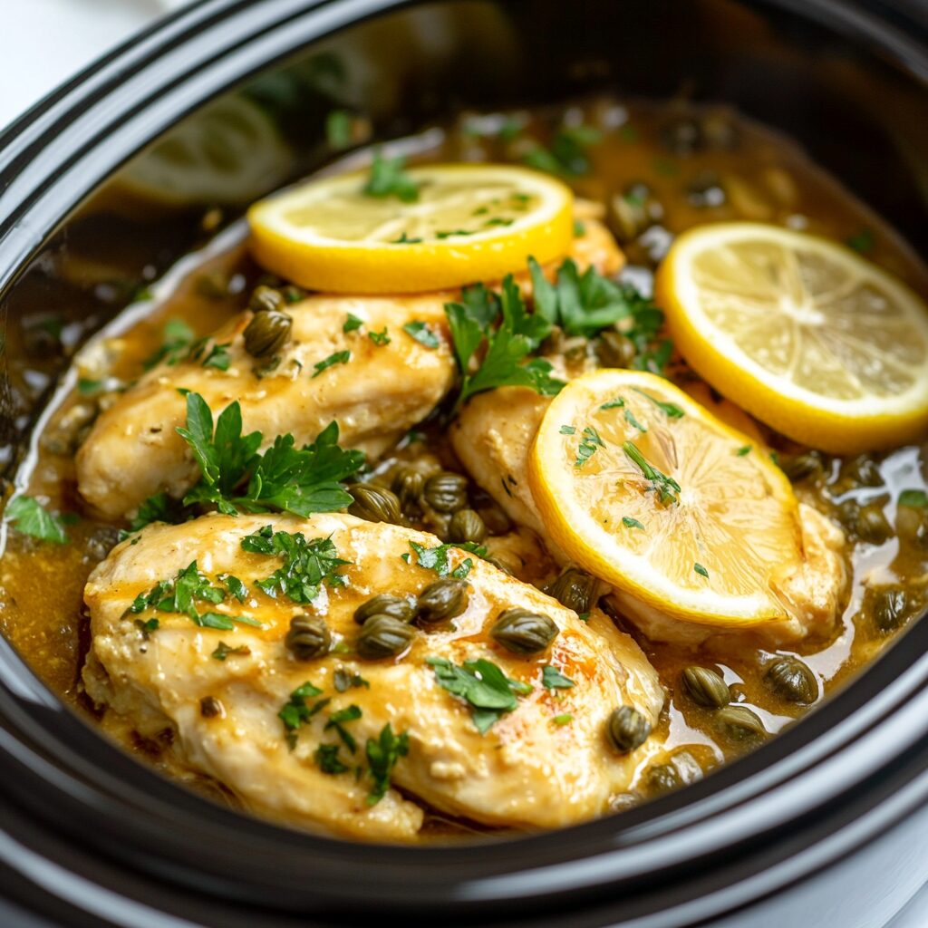 Crockpot Chicken Piccata – Easy Healthy Slow Cooker Dinner