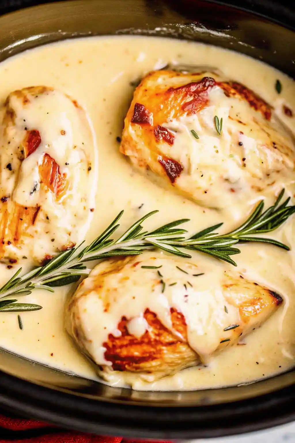 Tender slow cooker lemon herb chicken with luxurious cream sauce! This easy crockpot recipe makes restaurant-quality chicken with fresh rosemary & lemon. Perfect weeknight dinner!